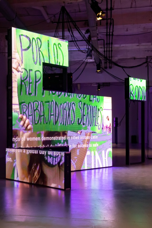 In LAWKI—NOW, a network of unsupervised algorithms curates from a large number of online videos. Through this compositional gesture, a new story of today is broadcasted, in which reality merges with the techno-imaginative. A specialized algorithm scrapes from streams of unlimited data to create its own ontology — based on visual stories that circulate, trend, and propagate across the web. In a multi-dimensional ‘random walk’ across this constructed world, global and local events are woven into a common narrative. As a stream of consciousness, the sequencing of search phrases indexically charts down our reality. Working with the architecture of the historic Der AA-Kerk in Groningen, the soundscape of LAWKI—NOW makes use of the 16th-century multi-particular polyphonic technique Cori spezzati (‘split choirs’). The space itself becomes an instrument through the layers of acoustic delays, creating a spatial stereo effect. The audio-visual narrative is divided into sequential chapters, which create non-linear points of entry and different outputs each time. The spatial installation invites the audience to move between, interact, and play with the screens to recalibrate how media environments are organized. In this walk of wonder, the viewer is not merely a consumer of the cacophonic spectacle but an active co-creator of both process and outcome.