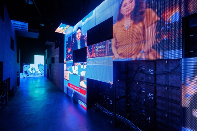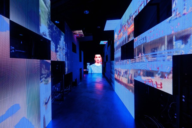 Worldwide, we watch a billion hours of online video. A. Day. Games, music, news, make-up, ASMR, vlogs, documentaries, tutorials, interviews, reviews, challenges, and, of course, cat videos! Each minute, 500 hours of video material are being uploaded to YouTube alone. With LAWKI—Alive, another edition of Life As We Know It, the artists condense this unimaginable amount of digital footage to an intuitive dynamic livestream driven by AI and the visitors’ movements. Smartly indexed search results continuously generate new associative visual stories in ten different languages. The result is an overpowering stream of images showing what keeps people busy from Boston to Bangalore. World and screen are no longer separate, we are in an immersive installation, but we are everywhere and nowhere at once as well. An excellent opportunity to get to know life (all over).