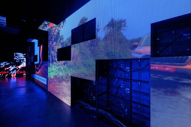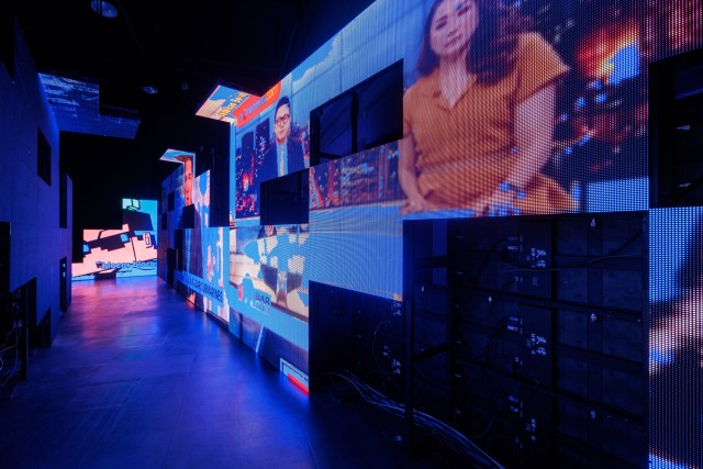 In LAWKI—NOW, a network of unsupervised algorithms curates from a large number of online videos. Through this compositional gesture, a new story of today is broadcasted, in which reality merges with the techno-imaginative. A specialized algorithm scrapes from streams of unlimited data to create its own ontology — based on visual stories that circulate, trend, and propagate across the web. In a multi-dimensional ‘random walk’ across this constructed world, global and local events are woven into a common narrative. As a stream of consciousness, the sequencing of search phrases indexically charts down our reality. Working with the architecture of the historic Der AA-Kerk in Groningen, the soundscape of LAWKI—NOW makes use of the 16th-century multi-particular polyphonic technique Cori spezzati (‘split choirs’). The space itself becomes an instrument through the layers of acoustic delays, creating a spatial stereo effect. The audio-visual narrative is divided into sequential chapters, which create non-linear points of entry and different outputs each time. The spatial installation invites the audience to move between, interact, and play with the screens to recalibrate how media environments are organized. In this walk of wonder, the viewer is not merely a consumer of the cacophonic spectacle but an active co-creator of both process and outcome.